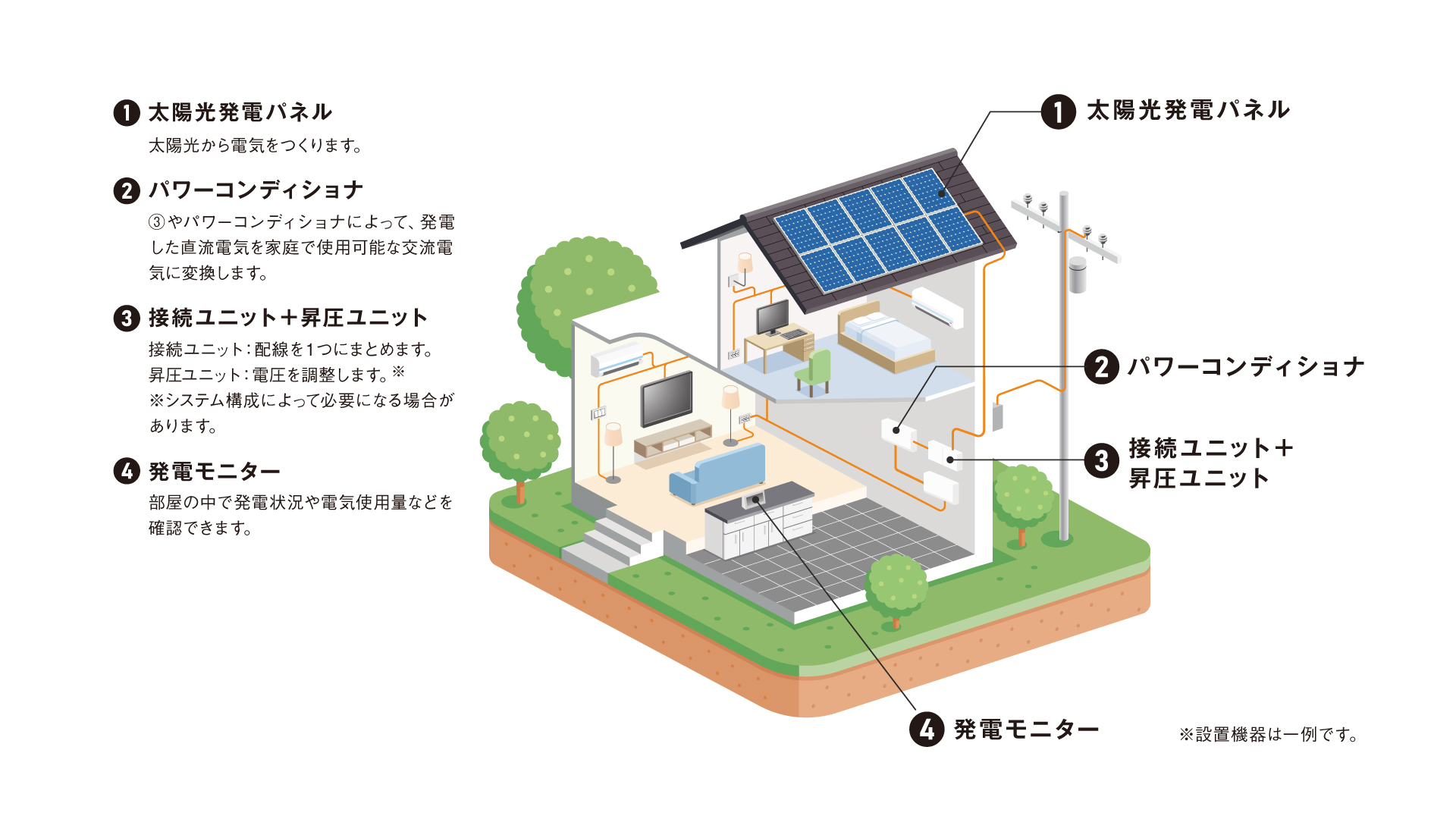太陽光発電の設置工事では以下のものを設置します。